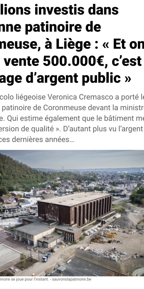 L’ancienne Patinoire de Liège, bâtiment emblématique de l’Exposition de 1939, est un témoin unique de notre patrimoine. Depuis 2012, le bâtiment attend une nouvelle affectation, tandis que le projet d’Ethias prévoit d’en conserver seulement le hall et de démolir le reste. Une telle destruction représenterait une perte patrimoniale majeure et un non-sens écologique. Nous demandons la mise en sauvegarde du site et une réflexion commune pour une réaffectation respectueuse de son histoire et de son architecture. Le patrimoine est l’affaire de tous : protégeons la Patinoire.