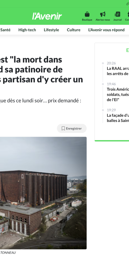 L’ancienne Patinoire de Liège, bâtiment emblématique de l’Exposition de 1939, est un témoin unique de notre patrimoine. Depuis 2012, le bâtiment attend une nouvelle affectation, tandis que le projet d’Ethias prévoit d’en conserver seulement le hall et de démolir le reste. Une telle destruction représenterait une perte patrimoniale majeure et un non-sens écologique. Nous demandons la mise en sauvegarde du site et une réflexion commune pour une réaffectation respectueuse de son histoire et de son architecture. Le patrimoine est l’affaire de tous : protégeons la Patinoire.