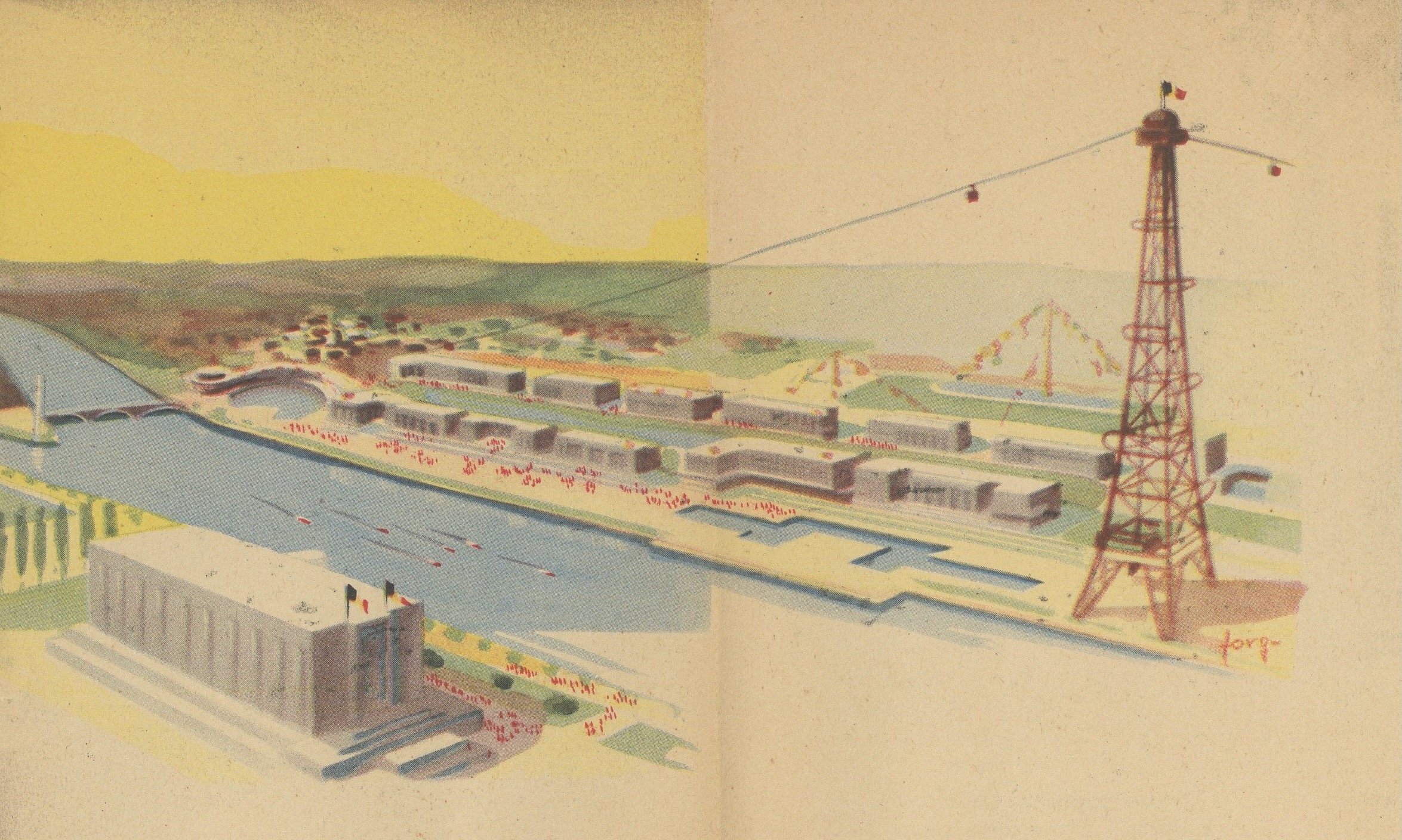En 1939, l’inauguration du canal Albert consacre l’achèvement d’un chantier colossal reliant désormais le bassin économique liégeois au port d’Anvers par voie fluviale. À l’initiative de l’asbl Le Grand Liège menée par Georges Truffaut, une grande exposition internationale est organisée pour célébrer ce nouvel ouvrage et adopte naturellement l’eau comme thématique centrale. Cet événement d’envergure constitue également l’occasion d’urbaniser une vaste zone au nord de la ville. L’ancienne plaine des manœuvres et, en vis-à-vis, la rive de Coronmeuse sont ainsi choisies pour accueillir les pavillons implantés le long de la Meuse.